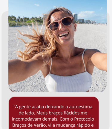 Você volta a usar regatas e vestidos de alça sem medo, dá tchauzinho com total segurança e vive livre daquela vergonha de expor seus braços em público!